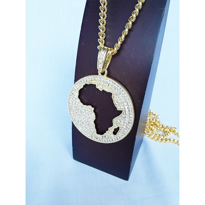 バチカンにまでジルコニアが埋め込まれたブリンブリンなアフリカンマップネックレス。