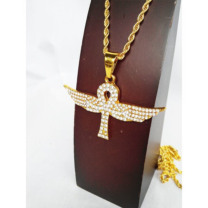 翼 スクリュー ジルコニア ラインストーン ゴールド 金 GOLD ネックレス ヒップホップ HIPHOP 817