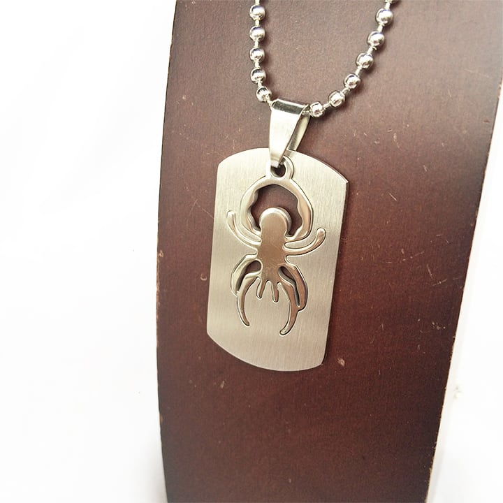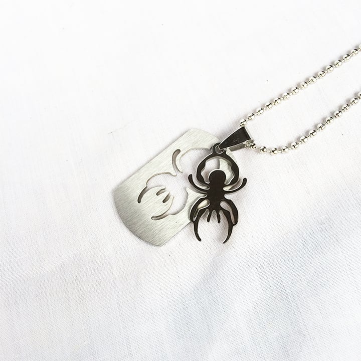 蜘蛛 タランチェラ ドッグタグ ボールチェーン チョーカー ネックレス 銀 シルバー SILVER 1865