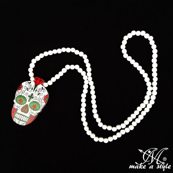 グラフィティ スカル ウッドネックレス スケボー ホワイト 白 B系 ストリート系 ヒップホップ ギャング マフィア スケーター パンク 258