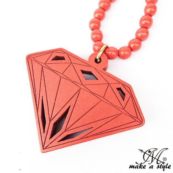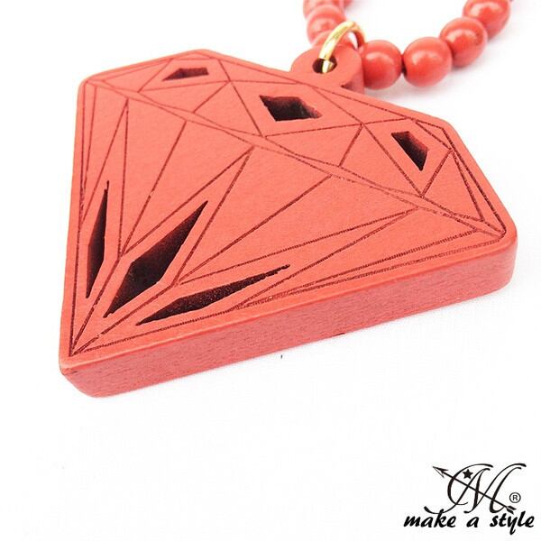 レッドカラーのDIAMONDをトップに持ってきたセレブなウッドビーズネックレス。