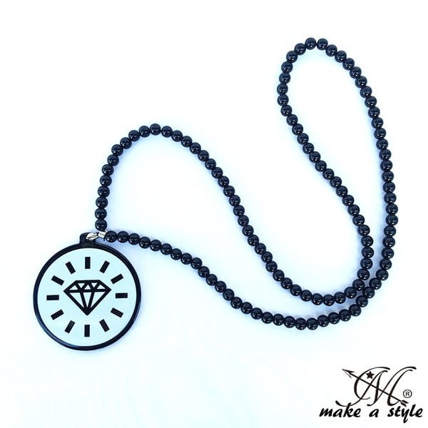 セレブ感のあるダイヤモンド柄をトップに落とし込んだアクリルビーズネックレス。
