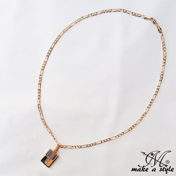 高級感プンプンのゴールドフィガロチェーン&プレートペンダントトップです。