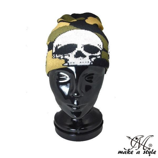 迷彩&スカル カモ CAMO カモフラージュ ニットキャップ 骸骨 ドクロ 迷彩 ガイコツ スカル ROCK ロック パンク B系 ストリート系 40
