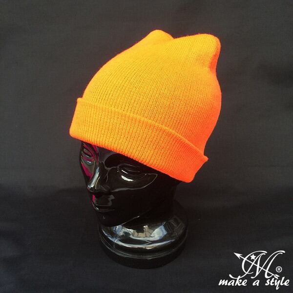 プレーン ニットキャップ 2WAY 無地 オレンジ ワッチキャップ B系 ストリート系 ヒップホップ ギャング マフィア スケーター パンク ロック sk8 バイカー 西海岸 311