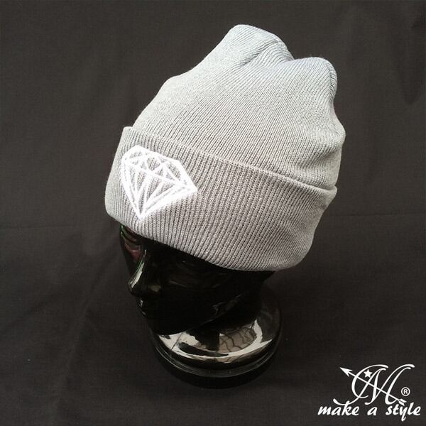 ダイヤモンド 刺繍 ニットキャップ ワッチキャップ グレー GRAY 灰 B系 ストリート系 ヒップホップ ギャング マフィア スケーター パンク ロック sk8 バイカー 379