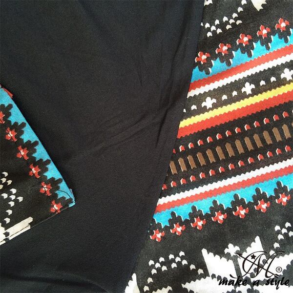 マルチカラーの幾何学柄をスリーブとフロントポケットに落とし込んだ、エスニック調のストリート系TEEです。