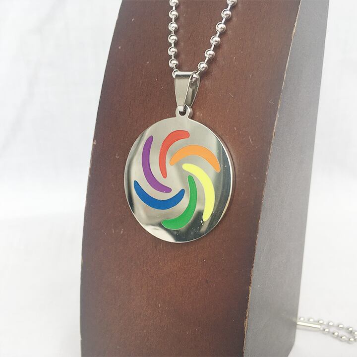 ドッグタグ ラウンド プレート レインボー ペンダント ネックレス チョーカー チェーン ボールチェーン 304