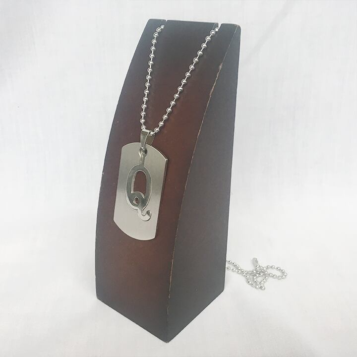 ドッグタグタイプのくり貫き型アルファベットネックレス。