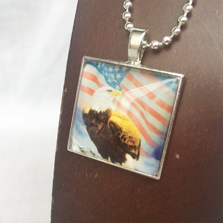 USA国旗 フラッグ アメリカ国旗 星条旗 アメリカンイーグル 鷲 ネックレス チョーカー ペンダント ボールチェーン 2717