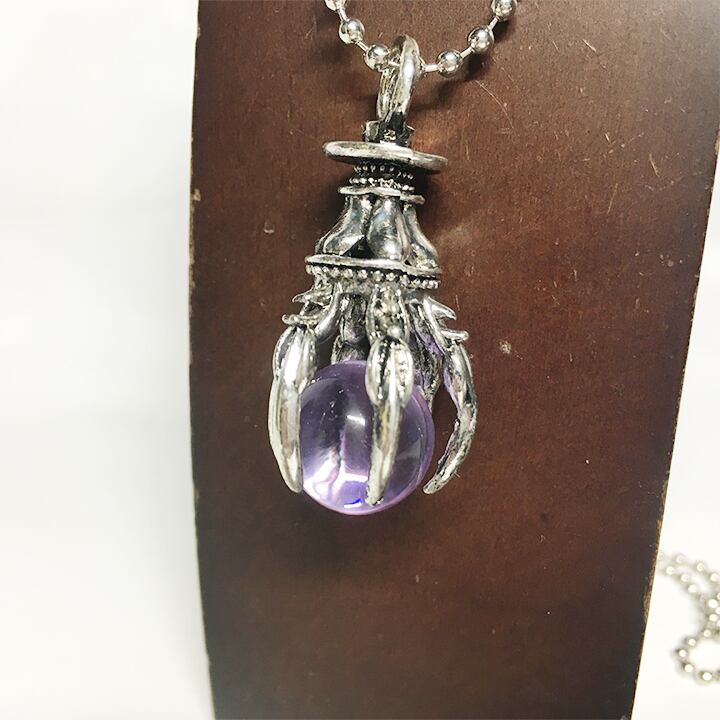 水晶のようなガラス玉をつかんだ爪がかっこいいトップのネックレス