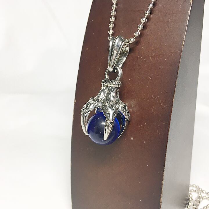 水晶のようなガラス玉をつかんだ爪がかっこいいトップのネックレス