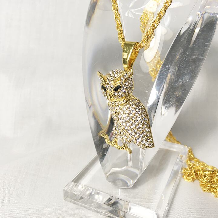 ふんだんにジルコニアが埋め込まれたフクロウのネックレスです