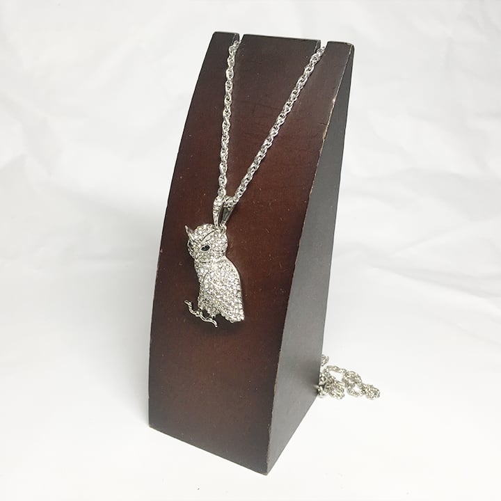 ふんだんにジルコニアが埋め込まれたフクロウのネックレスです