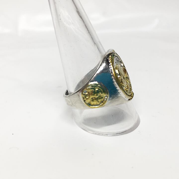 ゴールドとシルバーのコンビネーションカラーが美しいデザインリングです。