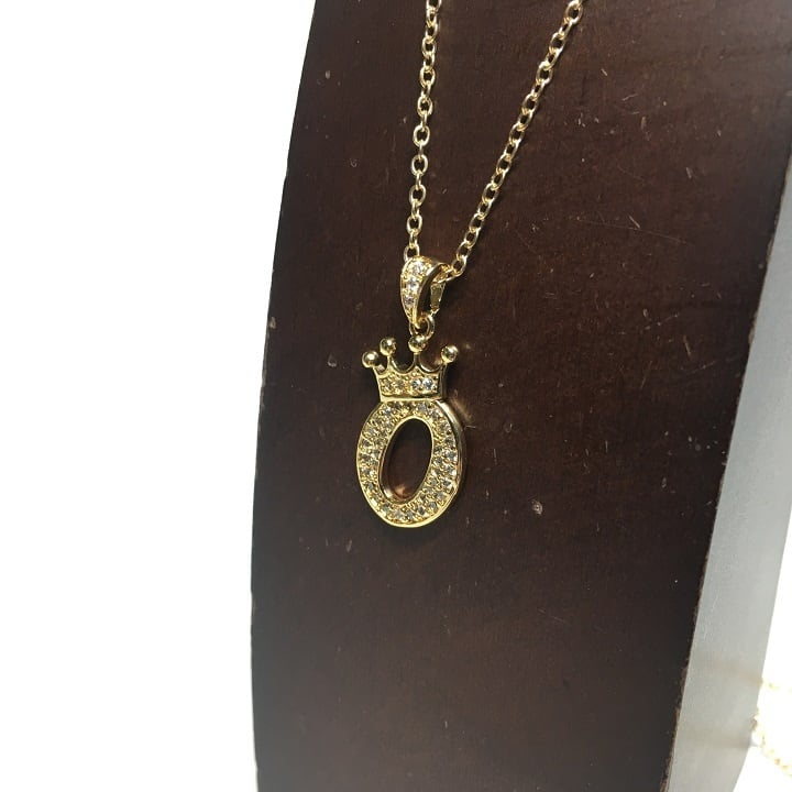 O アルファベット イニシャル ペンダント ネックレス チョーカー チェーン ジルコニア ラインストーン 3111