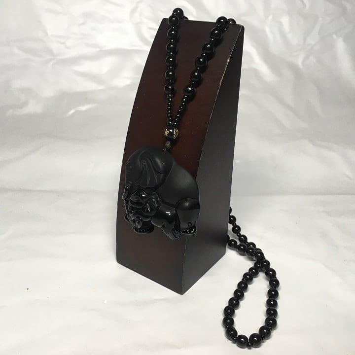 ブラック 数珠 象 エレファント ネックレス チョーカー ペンダント 155