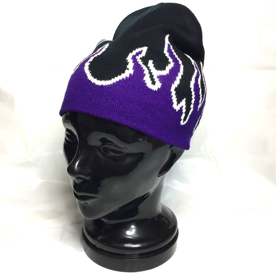 ファイヤーパターン バイカー ハーレー パープル 紫 ニットキャップ ワッチキャップ ニット帽 27