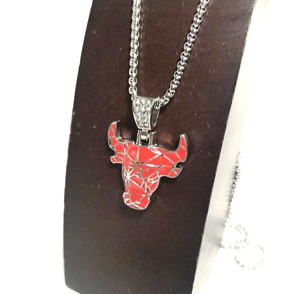 牛 バッファロー BULLS ブルズ ステンレススチール ネックレス 銀 シルバー 252